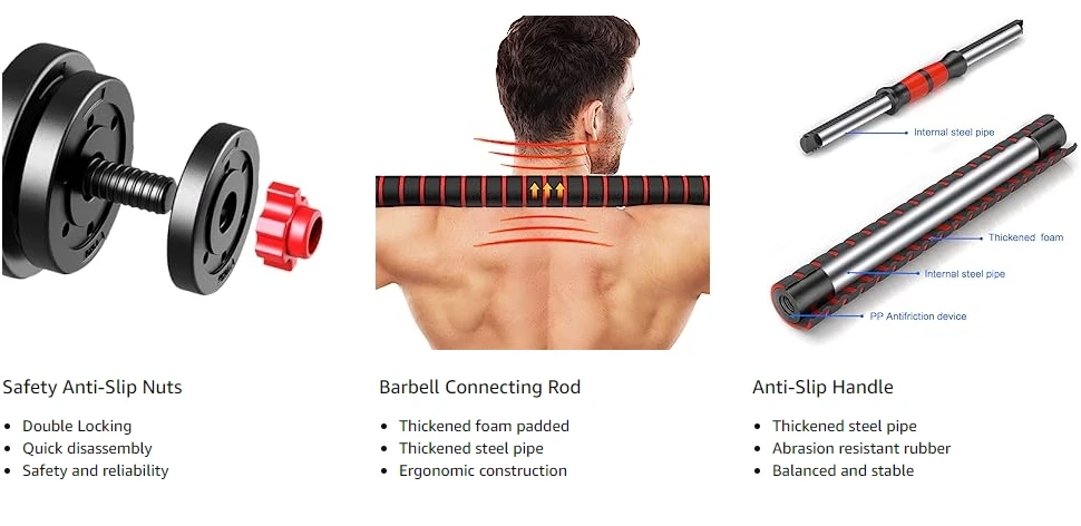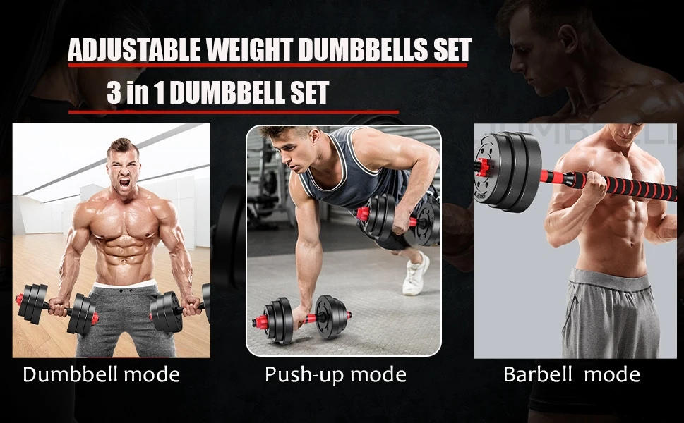 3 MODES - with 3 modes of use: dumbbell, light barbell and heavy barbell. Bring dumbbells to your home,Build your home gym.Get started on your fitness journey with a dumbbell workout!