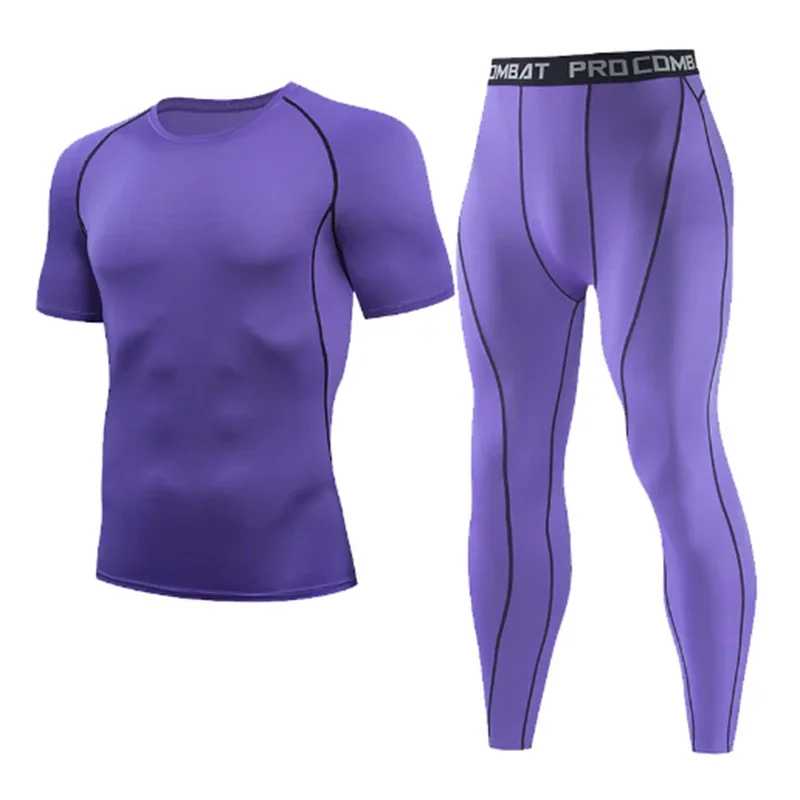 New Men's Tracksuit Gym Fitness Running 2 Pcs/Set Quick Dry Sweat-absorb Compression Sport Suit Clothes Jogging Sport Wear S-3XL