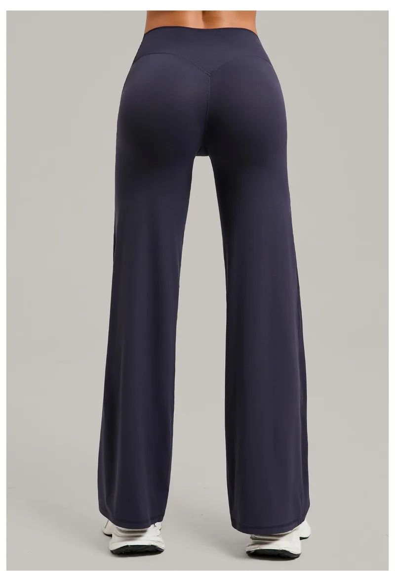 Women's Pilates Straight Yoga Pants Tight Fitting Hip Revealing Wide Leg Pants Outdoor Sports Running Casual Fitness Pants